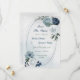 Schöne botanische Save the Date-Karte mit blauen, staubblauen und marineblauen Blumen mit grünen Blätter auf einem romantischen geometrischen Rahmen. Für weitere Informationen klicken Sie bitte auf die obige Sammlung oder kontaktieren Sie mich.
