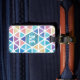 Moderne, abstrakte Aquarelldreiecke und geometrische Muster in einem wunderschönen Korallenriff-Farbschema aus Grüntönen der Blues und des Meereslebens, Pinks, Purpur und Gelb. Fügen Sie Ihr Monogramm zur Vorderseite und Ihre Namen-/Kontaktinformationen auf der Rückseite. Kontaktieren Sie den Designer, wenn Sie eine Modifikation dieses Designs wünschen oder es auf einem anderen Produkt gewollt haben möchten.