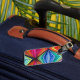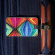Farbenfrohe, helle grafische Kunstdarstellung mit handentworfener geometrischer Musterkunst in rautenpsychedelischer, heller, lebhafter Regenbogenfarbenstruktur. Dieses Design wurde von der visuellen Künstlerin Sacha Grossel handgezeichnet und handgefärbt und von Pop- und Op-Art-Bewegungen der 1960er Jahre inspiriert.