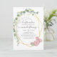 Trendy geometrische Eukalyptusgrün und rot rosa Rosen Bestätigungseinladung mit goldenem geometrischem Rahmen und Minze Aquarellspülrückwärts.