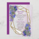 Geometric Gold Glitzer Rahmen Design mit Lavender - Violet Blume Bouquets für ein Frühjahr oder Sommer Hochzeitspaar Party Einladung Set zu personalisieren