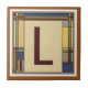 Set deinen Tee oder Kaffee auf diesem großartigen Untersetzer. Es verfügt über einen dekorativen Kunsthandwerkstil Buchstaben L in Bungalow-Herbstfarben. Dieser Stil war in den 1900er Jahren, als William Morris, Stickley und Frank Lloyd Wright arbeiteten, in der Jahrhundertwende in Mode.