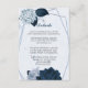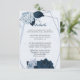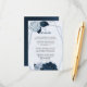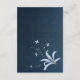 Elegante staubblaue und marinöse Blume mit schönen marineblau Blätter botanische geometrische Details Gehäuse Karte. Auf der Rückseite der Karte: zarte, staubige blaue Lilien vor mariniertem Hintergrund. Die Einzelheiten des Glitzer werden simuliert