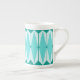 Dieses hat geometrische Diamanten u. Sternexplosion-Knochen-China-Tasse allen kitschy Charme von etwas, das kitschy und reizend ist. Die Vintagen inspirierten Ausrüstungsbeschreibungen ein Mod, Pfaublauhintergrund mit den hellblauen, länglichen Hexagonen, überlagert mit Türkisdiamanten und Pfaublau-Sternexplosionen. Es ist ein Kaleidoskop der Retro Güte! Dieses Fünfzigerjahre und Sechzigerjahre Palm Spring Artentwurfswürden aussehen wie es gleichmäßig zu Hause auf einem modernen Motelzeichen der Mitte des Jahrhunderts oder im Haus Ihrer klassischen Fernsehlieblingsfamilie sein.