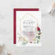 Rustikales boho burgundy rot (marsala) und weiße Pfannkuchen Herbarium Langstrecken Baby oder Brautparty per E-Mail Einladung mit goldenem geometrischem Rahmen.