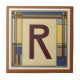 Set deinen Tee oder Kaffee an diesem tollen Untersetzer. Es verfügt über einen dekorativen Kunsthandwerkstil Buchstaben R in Bungalow Herbstfarben. Dieser Stil war in den 1900er Jahren zur Jahrhundertwende (letztes Jahrhundert) in Mode und ist heute noch sehr gefragt. Ändern Sie die Farbe der Außengrenzen in eine beliebige Farbe.