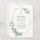 Forest eucalyptus grün Taufe Einladung mit goldenem geometrischem Rahmen anpassbar an Ihre Veranstaltung Spezifikationen.