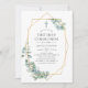 Wald Eukalyptus Grüne erste heilige Kommunion Einladung mit goldenem geometrischem Rahmen anpassbar an Ihre Event-Spezifikationen.