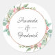 Chic pastellfarbene Aquarell heilige Weihnachtsaufkleber mit einer Rose goldgeometrischen Rahmen, eukalyptus, mistletoe und Kiefer.