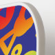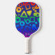 Dieses künstlerische Design für ein Pickleball-Paddel zeichnet sich durch eine energetische geometrische abstrakte Grafik aus. Der lila Hintergrund umfasst eine lebhafte Mischung aus Regenbogenfarben, die Bewegung und Kreativität vermitteln. Kleine Monogramm-Initialen werden subtil am unteren Rand des Griffs platziert und geben dem dynamischen Design eine persönliche Touch. Dieses aus robustem Grafit gefertigte Paddel bietet hervorragende Kontrolle und Power für jeden Schuss, von exakten Dinkten bis hin zu kräftigen Stößen. Egal ob Sie ein erfahrener Spieler sind oder gerade erst anfangen, dieses personalisierte Paddel lasse Ihnen, den Platz mit Zuversicht und einem unverwechselbaren Look zu erreichen. Es ist eine ideale Mischung aus individuellem Stil und konkurrenzfähiger Leistung, die sicherstellt, dass Sie eine Aussage mit jedem Spiel machen.