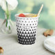 geometrische Formen mit schwarz-weißem Muster, die einen Papierbecher entwerfen, können Sie durch Klicken auf die Schaltfläche "Personalisieren" oben hinzufügen