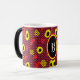 Kaffeemaschine mit geometrischen Formen und Punkten in Rot- und Gelbtönen