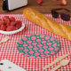 Die zeitgenössische geometrisch grün und rosa Farbpalette prägt moderne Party-Veranstaltungen.