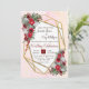 Rustikale, trendige Sommerfarben von Blush, Burgund, Weißrosen und Salbei Blätter auf einem geometrischen Metallic-Gold-Rahmen mit weißem Hintergrund