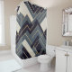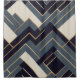 Goldene Linien und geometrische Formen in indigoblau, blau-grau und beige bilden diese atemberaubende, zeitgenössische Illustration.
