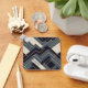 Goldene Linien und geometrische Formen in indigoblau, blau-grau und beige bilden diese atemberaubende, zeitgenössische Illustration. Individuelle Name