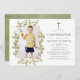 Wild bewaldete Wälder Einladung mit Blätter, die einen goldenen geometrischen Rahmen schmücken. Es wird ein porträtförmiges Foto empfohlen.