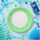 Grüne Ränder mit cremefarbenen und grauen geometrischen Polka Punkten. Weiße Mitte in hellgrauem Kreis umrissen. Original Design von TamiraZDesign.