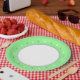 Geometrische grüne Creme Grau Polka Dots Pappteller
