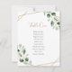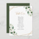 Diese individuell anpassbare Tischnummern-Card wurde für die Koordination mit unserer Hochzeitskollektion Moody Greenery konzipiert. Sie bietet Aquarellgrün-Eukalyptus-Blätter, die mit einem goldgeometrischen Rahmen versehen sind und mit einem modischen goldenen und klassischen Serif-Schriftart in Grau kombiniert werden. Um erweiterte Änderungen vorzunehmen, klicken Sie unter Anpassen dieser Vorlage auf "Klicken Sie, um weitere Anpassungen vorzunehmen".