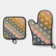 Geometrische Hexagon-Blumenformen Erdgrün rosa Ofenhandschuh & Topflappen-Set