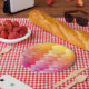 Geometrische Hexagon-Teller, rosa und gelb Pappteller