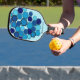 Dieses Paddel zeichnet sich durch ein künstlerisches und dynamisches Design aus. Die Oberfläche ist mit Hex-Formen in verschiedenen Farbtönen der Blues bedeckt, mit fetten, schwarzen Linien, die durch die Grafik gewebt werden, und schafft so ein Gefühl von Bewegung und Tiefe. Dieses aus robustem Grafit gefertigte Paddel bietet hervorragende Kontrolle und Power für jeden Schuss, von exakten Dinkten bis hin zu kräftigen Stößen. Egal ob Sie ein erfahrener Spieler sind oder gerade erst anfangen, dieses personalisierte Paddel lasse Ihnen, den Platz mit Zuversicht und einem unverwechselbaren Look zu erreichen. Es ist eine ideale Mischung aus individuellem Stil und konkurrenzfähiger Leistung, die sicherstellt, dass Sie eine Aussage mit jedem Spiel machen.