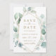 Diese Hochzeit speichern Sie das Datum Einladung mit gemalten Aquarell Eukalyptus und botanisch grünen Blätter mit einem goldenen geometrischen Rahmen.