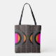 Große, kühne und farbenfroh halbkreisförmige Lavaschleifen überlagern einen grau-schwarzen, geflochtenen Korb wie ein Muster. Loops Farbe Pop das Design mit hellen rot, orange, gelb und dunkelrosa Farben in schwarzen Kreis Konturen Design by © Ms_Jade