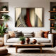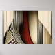 Eine faszinierende abstrakte Komposition, die die Spannung zwischen geraden Linien und fließenden Kurven erforscht. Vertikale Streifen in Schattierungen von Rot, Gold und Schwarz erzeugen einen dynamischen visuellen Rhythmus, während gekrümmte geometrische Formen die Komposition durchqueren und Tiefe und Bewegung erzeugen. Das Kunstwerk spielt mit Perspektive und optischer Täuschung.