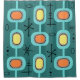 Diese atomare Ära im Stil der modernen abstrakten Kunst Mitte des Jahrhunderts hat Kreise, Linien und sputnik Sternexplosionen. Für Liebhaber von kitschigen Designs aus der Mitte des Jahrhunderts. Bunt und farbenfroh mit aquamarin, türkis, orange und gelb.