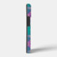 Ein schlankes iPhone Gehäuse mit einem auffallenden geometrischen Design aus Dreiecken in einer harmonischen Mischung aus farbenfrohen Dias mit Farbverlauf. Das Muster zeigt ein künstlerisches Stück lebendiger Farbtöne wie lila, gelb, rot, das sich nahtlos ineinander übergeht.