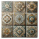 Dekorative Fliesen zeigen komplexe geometrische Designs, die durch kulturelle Motive inspiriert werden. Jede Kachel weist einzigartige Farben und Muster auf und schafft eine harmonische Mischung, die ein Gefühl von Kunst und Tradition hervorruft.