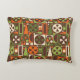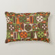 Diese ursprünglichen, retro Fünfzigerjahre/Sechzigerjahre MittlerMod rechteckige Kissenentwurf abstrakten geometrischen Musters wird von den Dreiecken, von den Quadraten, von den Rechtecken und von den Kreisen gemacht. Es hat in den Vintagen Schatten der Orange, des Grüns und der Creme auf einem braunen Hintergrund gemacht. Wiederholungen dieses hübsche Musters nahtlos. Es ist für Fans der Mitte- des Jahrhundertsmoderner Kunst.