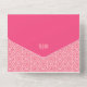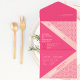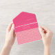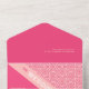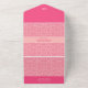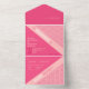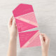 Die geometrischen Rose Red All in One Wedding Invitation zeigen ein geometrisches Muster von Rose mit Rosa, Korallen und Rot mit komplementärer Rot-Farbe, die harmonisch als eine harmonisch kombiniert. Die stanzende Typografie schafft einfach ein einzigartiges Styling mit dem korallenrosa Streifen zum Hervorheben.