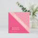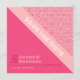 Geometrische Rose Rote Save the Date Karte zeigt ein geometrisches Muster von Rose mit Rosa, Korallen und Rot mit komplementärer Rot-Farbe, die harmonisch als eine harmonisch kombiniert. Die stanzende Typografie schafft einfach ein einzigartiges Styling mit dem korallenrosa Streifen zum Hervorheben.