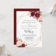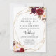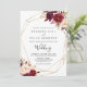 Diese geometrische rustikale boho blumige Vorder-und Rückseite Hochzeit Einladung ist perfekt für eine einfache Hochzeit. Das Design besteht aus rosa, lila, roten und bordeauxfarbenen, in eleganten Bouquets mit grünem Blattwerk eingearbeiteten, goldenen geometrischen Rahmen. Rett Papier, indem man mehr Details auf der Rückseite der Einladung anstatt auf einer separaten Gehäusekarte angibt.