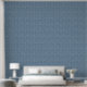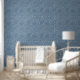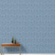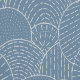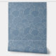 Die Tapete weist ein modernes geometrisches Muster von handgezeichneten Jakobsmuscheln auf, mit cremefarbener Linienkunst in Smokey Blue für einen zeitgenössischen Look.
