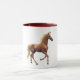 Diese elegante Keramik-Tasse zeichnet sich durch ein auffallendes geometrisches Pferdedesign aus, das mit klaren Linien und dreieckigen Formen gefertigt wurde.