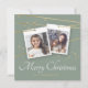 Eine sehr stilvolle und moderne Weihnachts-Weihnachtsgrüße-Karte mit zwei eigenen Fotos auf der Vorderseite, die in schönen weißen Bilderrahmen auf geometrisch goldenen Tapeten aufgehängt sind. Mit schönen hellen goldenen Sternen auf grünem Hintergrund.
