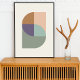 Ein minimalistisches modernes abstraktes Plakat mit elegantem geometrischem Design in gedämpften Farben wie Korallenrosa, Rosset-Orange, lila, weiches Blau, Salbei-Grün und natürliches Weich-Grau. Das perfekte Accessoire für eine minimale zeitgenössische Zuhause.