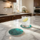 Mit diesem geometrisch gestalteten Untersetzer aus Sandstein fügen Sie Ihrem Raum eine Touch der modernen Eleganz hinzu! Mit einem abstrakten Muster aus in Gold umrissenen aquamarinen und grünen Dreiecken verbindet dieser Untersetzer zeitgenössisches Design mit Funktionalität. Ideal zum Schutz der Oberflächen vor Verschütten und Hitze, ist es eine großartige Ergänzung zu jedem Couchtisch, Schreibtisch oder Essbereich. Ideal für Zuhause, Büro oder als nachdenkliches Geschenk für Designliebhaber!