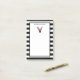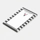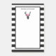 Große formschöne Noten mit einem schwarzen Hirschkopf aus geometrischer Linie und einem rosa Blumenkronen. Rustikales und trendiges Design. Hintergrund ist ein Muster mit schwarz-weißen Streifen mit einem weißen Rahmen, der oben platziert ist. Personalisieren mit einem Namen.