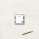 Kleine quadratische Klebrigen mit einem schwarzen Hirschkopf aus geometrischer Linie und einem rosa Blumenkronen. Rustikales und trendiges Design. Hintergrund ist ein Muster mit schwarz-weißen Streifen und einem weißen, oben platzierten Rahmen.