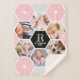 Machen Sie Ihre eigene personalisierte Foto-Decke! Dieses Design zeigt eine geometrische 6-Foto-Collage, ein rosa und graues Hexagon-Muster, eine mittlere Monografie und einen Familiennamen in weißem Schriftart, um mit Ihren eigenen Details zu personalisieren. Es wäre ein schönes Jubiläumsgeschenk.