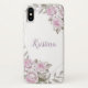 Dieses Gehäuse wurde mit einem lila Blumenmuster mit silbernen Glitzer-Akzenten entworfen und kann mit einem beliebigen Namen oder Text versehen werden.