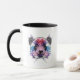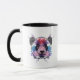 Dieses Ausrüstungsbeschreibungen ein Pandagesicht im Dreieckrahmen mit Aquarelltintentropfen.