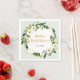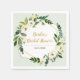 Eine goldene Folie sieht geometrisch aus, mit grünen und weißen, blumenfarbenen Bukett-Ecken ist Set vor einem leichten aqua Hintergrund auf dieser Serviette. Eine schöne moderne Ergänzung zu Braut oder Polterabend, Hochzeit, Geburtstagsparty oder Verlobungsfeier. Verfügbar mit passenden Produkten.