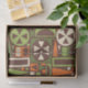 Dieses originelle, abstrakte geometrische Muster im Retro-Stil der 1950er/60er Jahre besteht aus Dreiecken, Quadraten, Rechtecken und Kreisen. Es ist in Vintagen Orange-, Grün- und Cremetönen auf braunem Hintergrund gestaltet. Dieses hübsche Muster wiederholt sich nahtlos. Es ist für Fans der Moderne des 20. Jahrhunderts. Fügen Sie eine Touch antiker Mod Eleganz mit diesem cool minimalistischen Motiv hinzu.