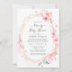 Trendy Aquarell rosa Sakura fährt durch Brautdusche oder Babydusche Einladung mit geometrischem Rahmen aus Rose vergoldet.